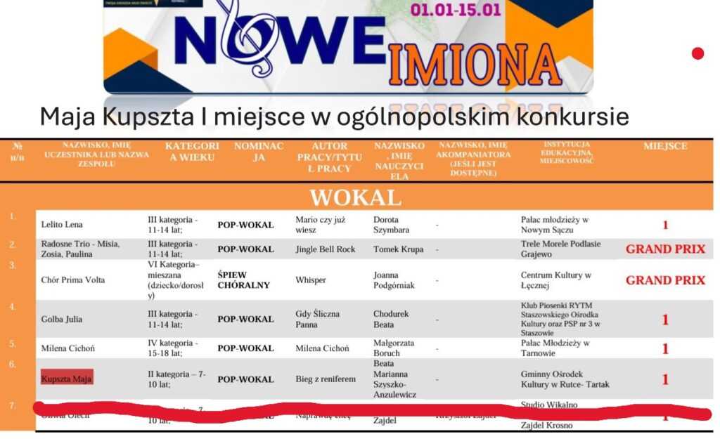 MAJA KUPSZTA – II nagroda w konkursie powiatowym