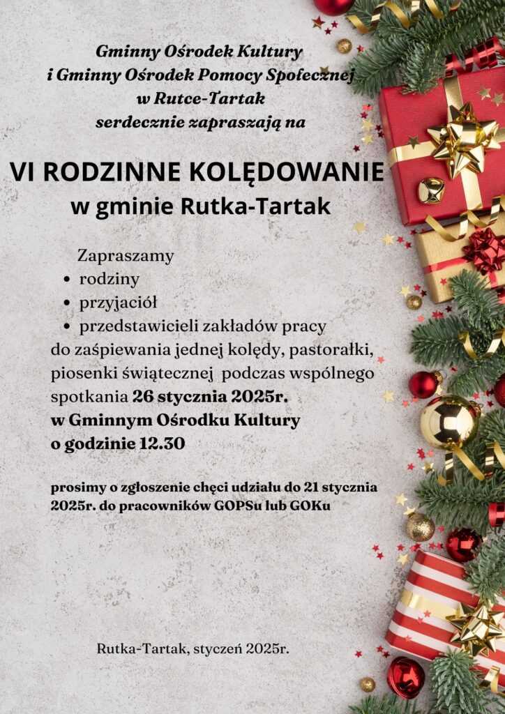 26 stycznia w sali GOK-u odbyła się VI edycja świątecznego spotkania integracyjnego mieszkańców gminy Rutka- Tartak pod nazwą RODZINNE KOLĘDOWANIE 2025.