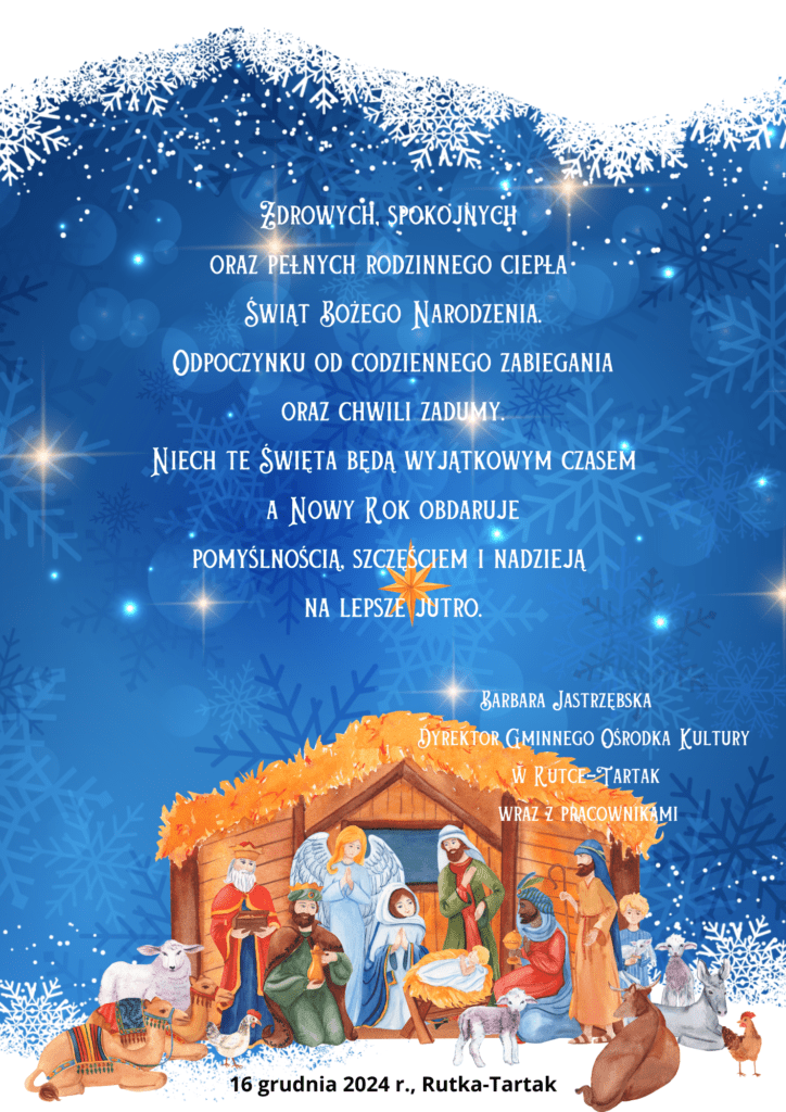 Dnia 19 grudnia w sali Gminnego Ośrodka Kultury w Rutce- Tartak odbyła się WIGILIA GMINNA. W organizację spotkania włączyło się Koło Gospodyń Wiejskich „WONNA RUTA”.
