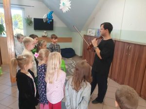 Oryginalne utwory Chopina w specjalnie przygotowanych wersjach wykonane przez: Batłomieja Zajkowskiego (pianino), Izabelę Buchowską (wiolonczela), Damiana Orłowskiego (skrzypce). Spotkanie poprowadziła Viola Łabanow, która pięknie wprowadziła najmłodszych w działania muzyczne i teatralne.