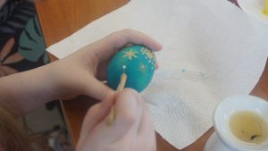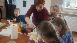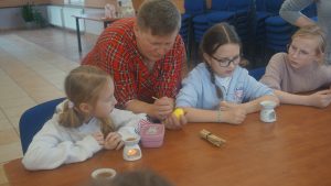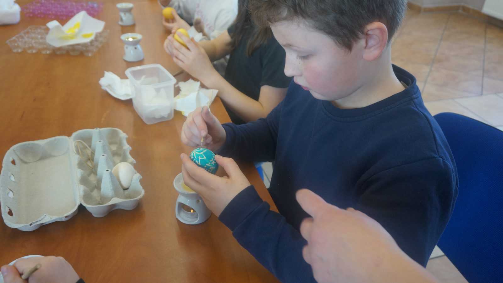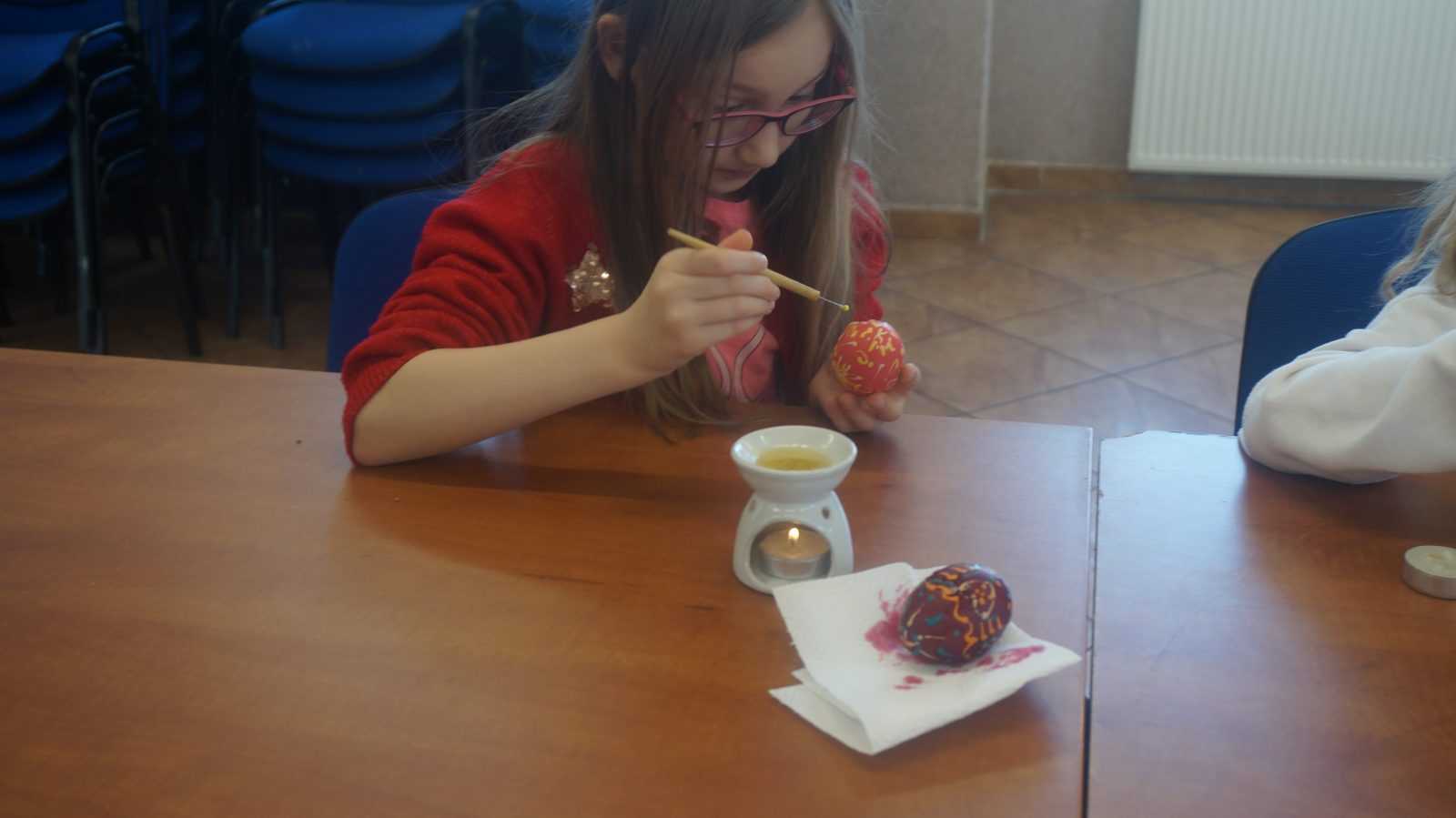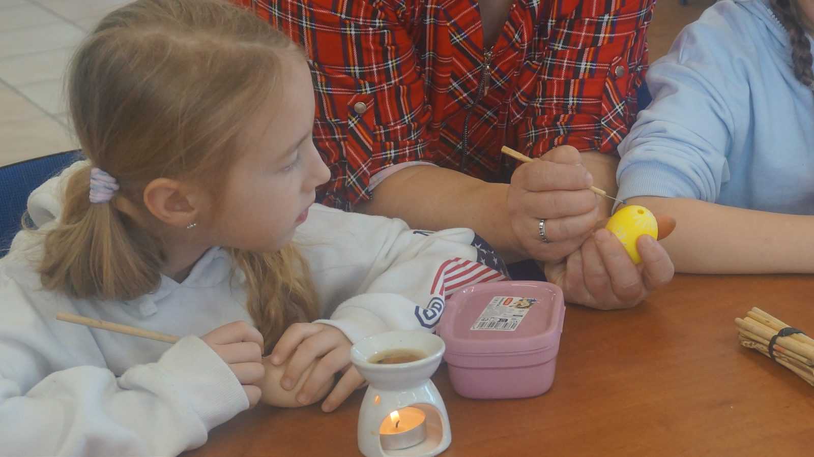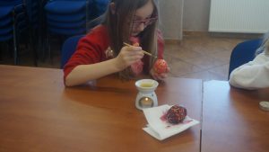 Warsztaty pisankarskie dla dzieci, młodzieży i dorosłych poprowadziła pani Renata Dubielewska, która swój kunszt pisankarski szlifowała przed lat pod okiem śp. Ireny Szyszko –  uznanej pisankarki w województwie.